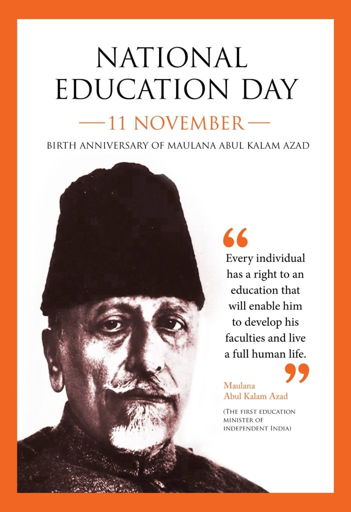 National Education Day is an annual observance in India to commemorate the birth anniversary of Maulana Abul Kalam Azad, the first education minister of independent India, who served from 15 August 1947 until 2 February 1958. National Education Day of India is celebrated on 11 November every year.